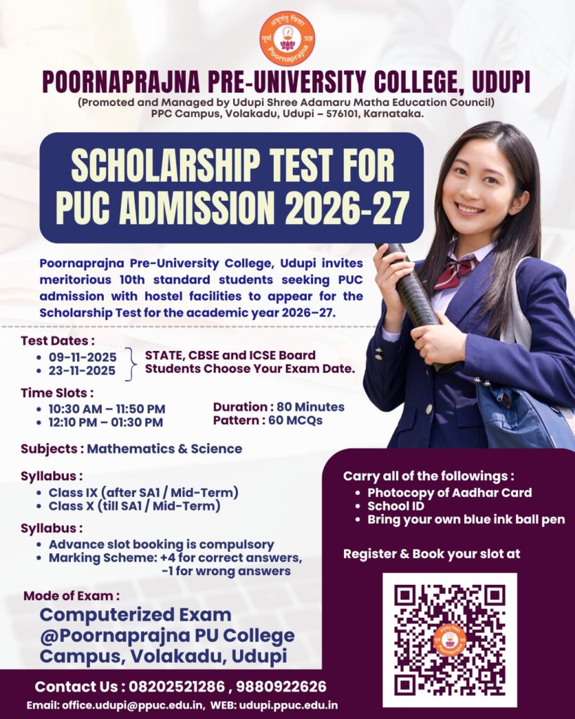 Scholarship Test For PUC Admission 2026-27