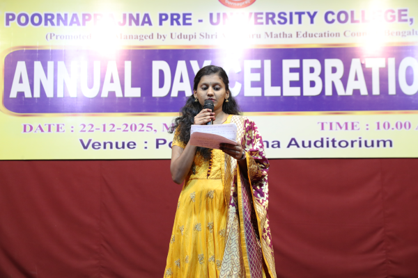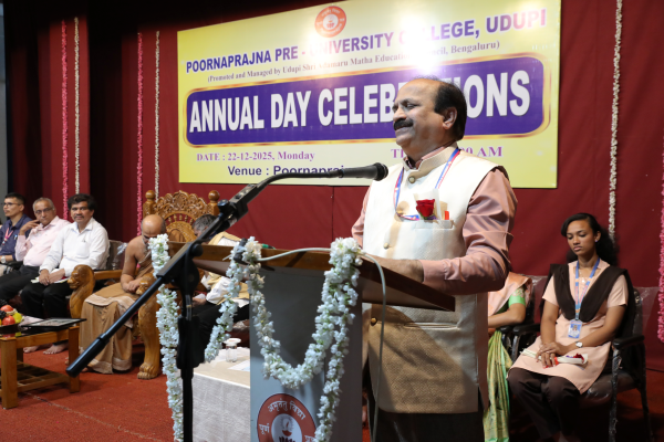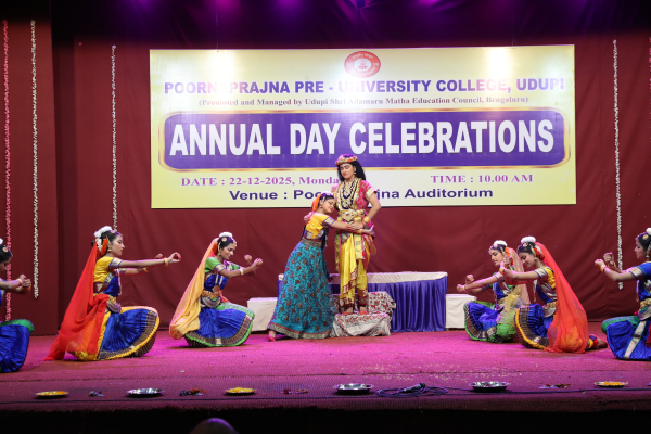 Poornaprajna PU College, Udupi celebrated its Annual Day Celebrations for the academic year 2025–2026 with great enthusiasm on Monday, 22nd December 2025 at 10.00 a.m. at the Poornaprajna Auditorium.